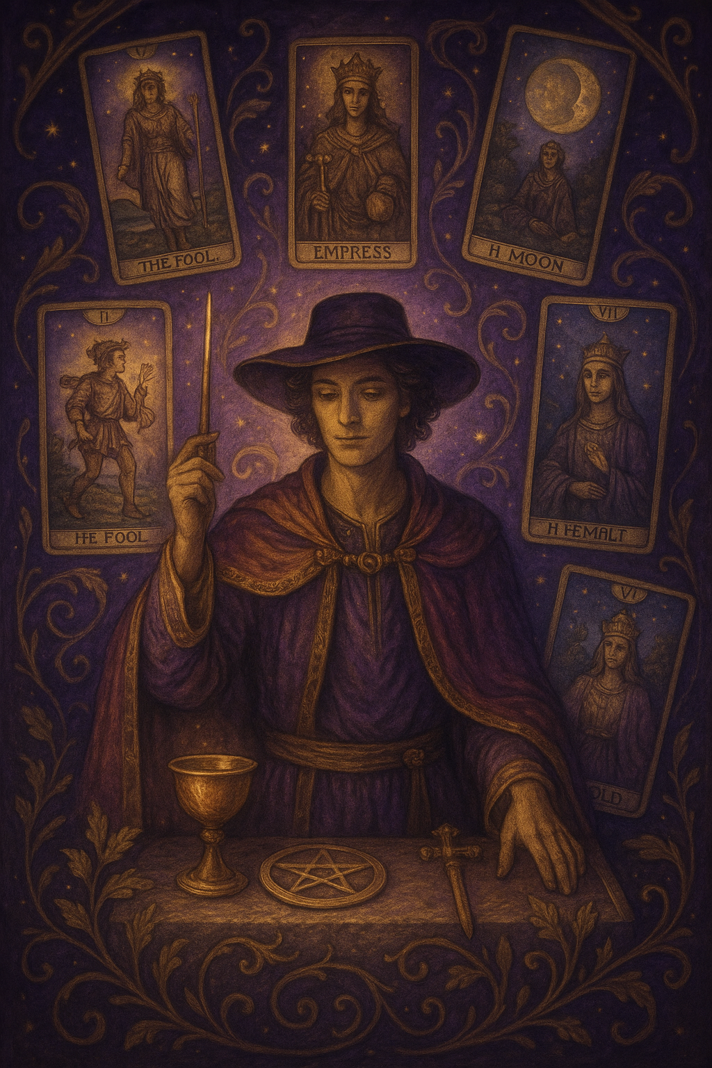 Tarot Foundations: Behind the Veil: A Deep Dive into Tarot Imagery is a comprehensive beginner’s course designed to introduce students to the symbolic language, meanings, and imagery of all 78 cards in the Rider-Waite Tarot deck. Without focusing on spreads or readings, this class guides students through the Major and Minor Arcana, suit by suit, helping them build a strong visual and intuitive connection with each card. Through detailed lessons, themed worksheets, and visual imagery, students uncover the spiritual, emotional, and elemental wisdom behind every archetype—culminating in an exploration of the Fool’s Journey as a symbolic life path. This class lays the foundation for deeper tarot study by focusing on symbolism, structure, and story.