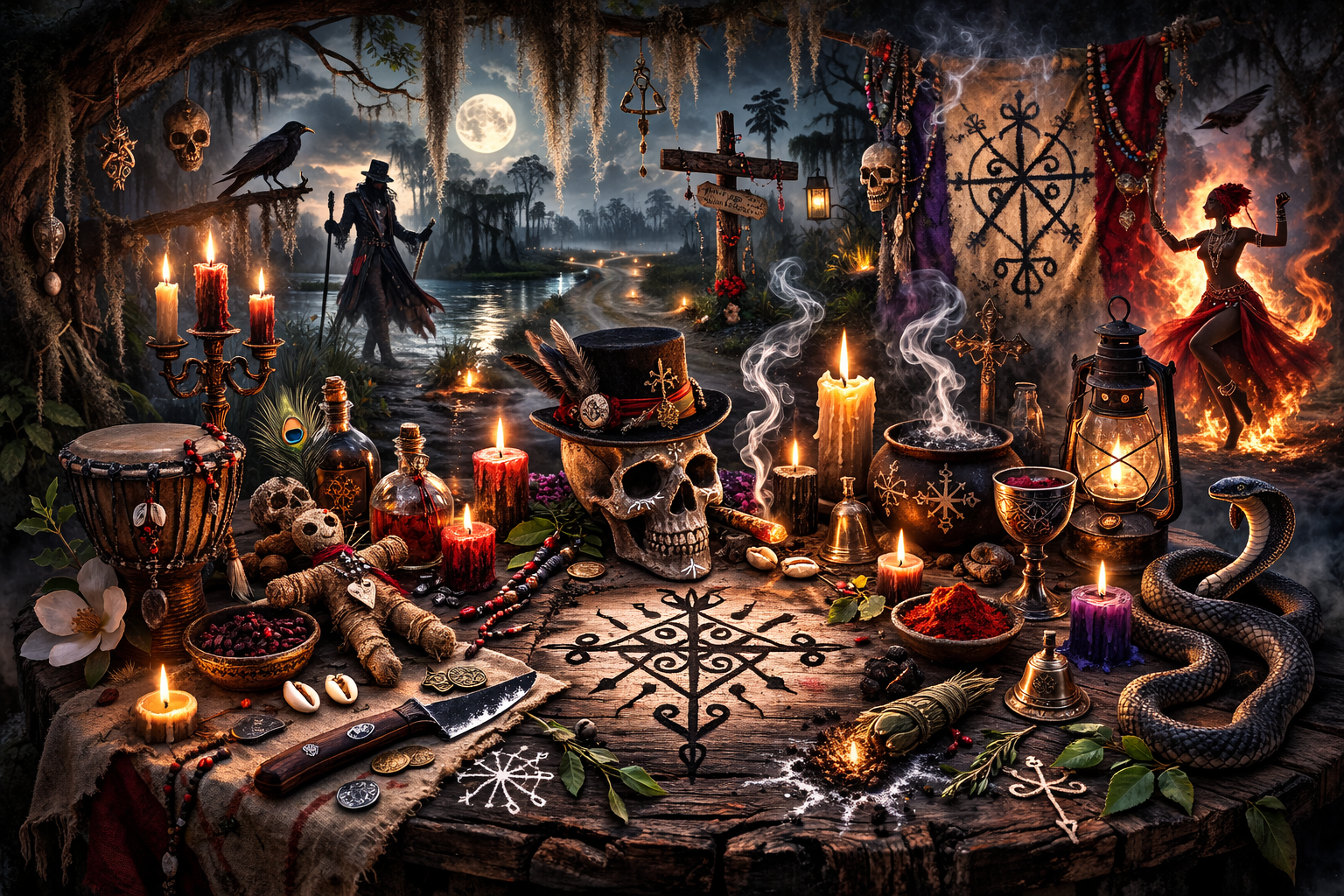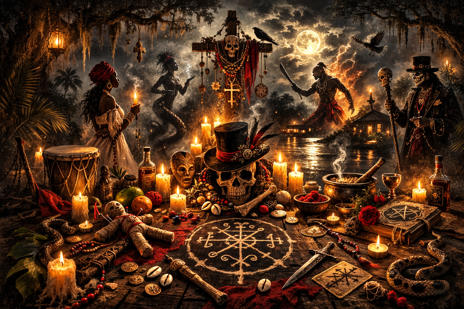 Candlelight & Crossroads: The Loa of Voodoo invites students to walk alongside the sacred spirits of fire, death, love, war, and desire. In this immersive five-lesson journey, you’ll meet the powerful Loa—Papa Legba, Erzulie, Baron Samedi, Ogoun, and the Ghede—and explore their mysteries through myth, ritual, and embodiment. From the fiery forge to the graveyard gate, each lesson reveals the spiritual depth, cultural richness, and transformative power of the Voodoo pantheon. This is a course of truth, strength, laughter, and liberation.